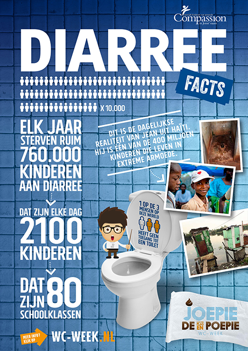 Met de opbrengst van de actie helpt Compassion kinderen in armoede: we bouwen toiletten, helpen zieke kinderen, zorgen voor schoon drinkwater en geven voorlichting aan kinderen en ouders over het belang van goede hygiëne. -