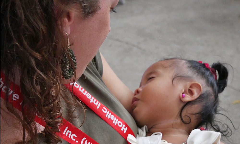 “In een snikhete kerk met loeiende ventilatoren worden we hartelijk verwelkomd door een groep moeders met baby’s. Al snel word ik voorgesteld aan Ayesha. Ik ben op slag verliefd. Op een plastic stoel achterin de kerk vertelt haar moeder Charismae me haar bizarre verhaal.