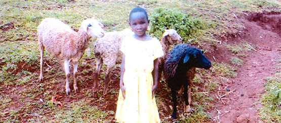 Babra’s gezin (Uganda) kreeg 4 schapen via een familiegift.